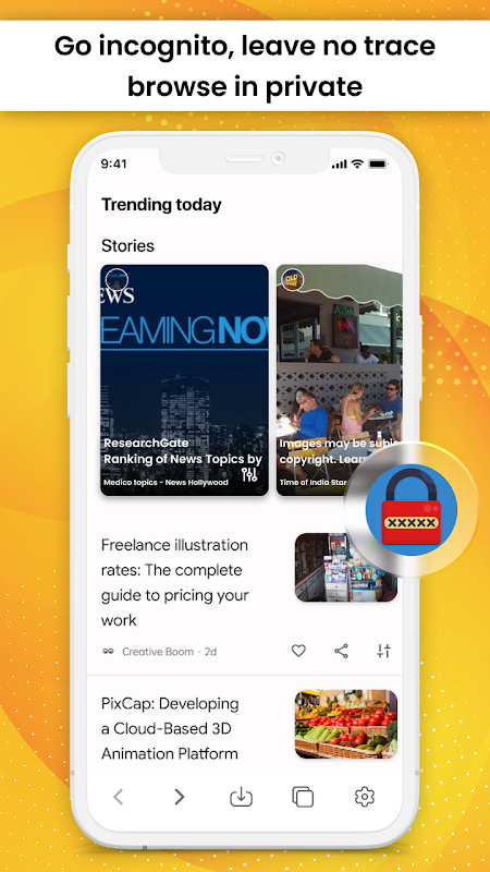 Easy to save your favourite web pages in bookmarks and visit them later when you need them in a personal browser app.