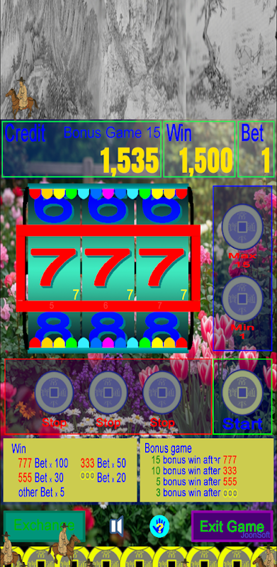 This game is played by stopping three spinning numbers to earn points according to the winning pattern.