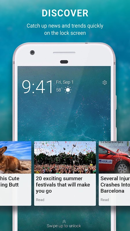 Catch up what's happening and trending in the world just by scrolling news card on your lock screen. You can add what you like to the news card as you find new topics, magazines or blogs to follow. Also, read publications from any news media website such as The New York Times, CNN, BBC, and so on.