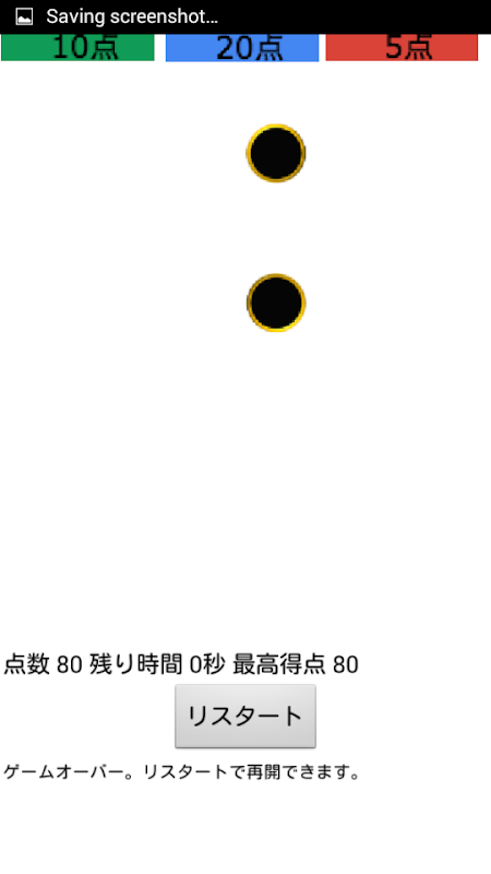 * ゲームオーバーになったらリスタートボタンを押せばゲームを再開できます。