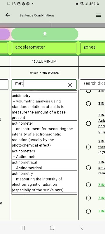 На странице комбинаций он может составлять предложения, используя заранее созданные части речевых комбинаций. На странице таблицы просто перечислены похожие слова для каждой части речи, поэтому вы можете выбрать свою собственную комбинацию.