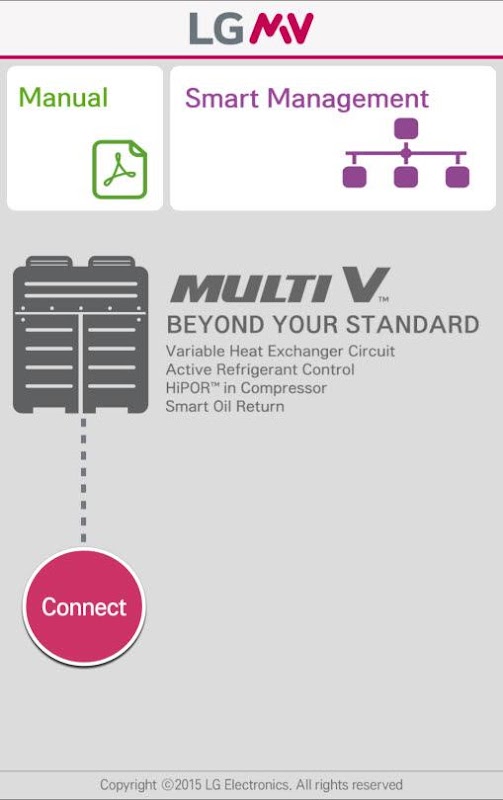 MobileLGMV is a maintenance and troubleshooting tool for LG air conditioning systems. It consists of a wireless communications module and a free smart phone app.