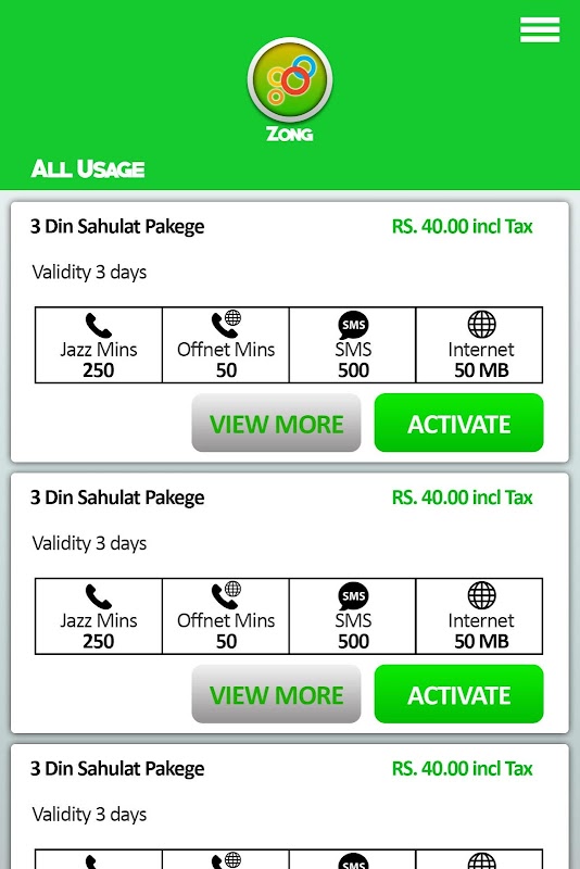 about all networks including Telenor Ufone Warid Jazz and Zong. All details against call