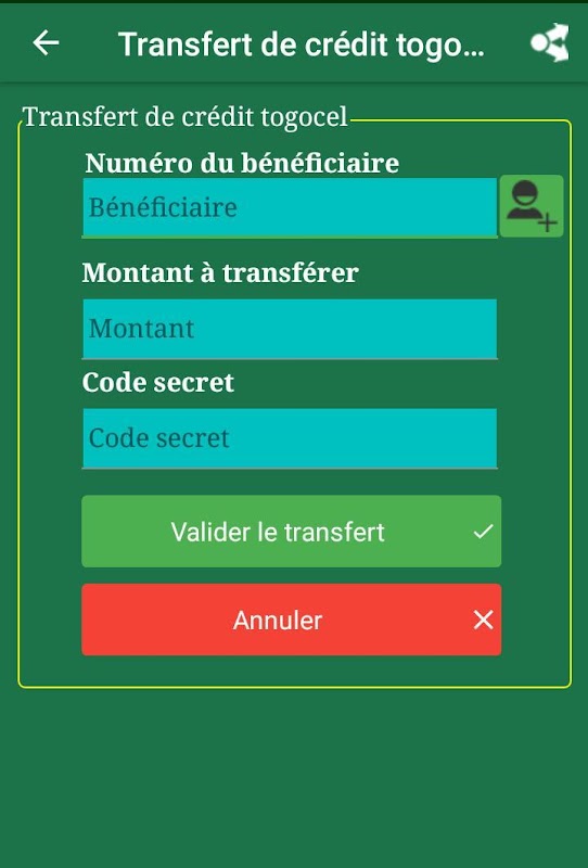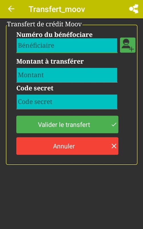 USSD-код Moblie предоставляет вам все коды пакетов (звонок, Интернет), оплату счетов (Canal +, CEET, TDE, CASH POWER ...) и операции T-Money Flooz простым щелчком мыши.