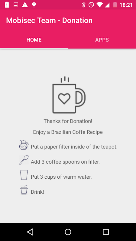This app do nothing it is a donation to support Mobisec Team creating new apps.