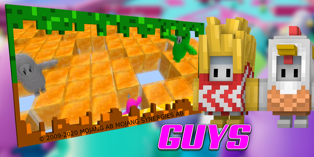 Мод ребята добавит в игру более десяти уникальных мобов для соревнования в мспе! Так же добавит паркур карту с ловушками и препятсвиями в которой будет только один победитель. Собирайте друзей и соревнуйтесь или зайдите в творческий режим и добавьте соперников самостоятельно. Дизайн паркура и препятствия похожи на ловушки из падают ребята. Будьте готовы что вы не раз улетите из карты которая находится на небесном острове. Каждый имеет уникальный скин. Отправь соперника в нокаут! На высоте практически не работают законы физики, разбивайте все на своем пути и тогда вы овладеете главной наградой.