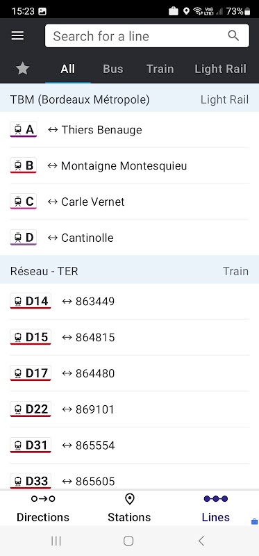 Помимо региональных поездов и автобусов, приложение объединяет городские сети Бордо, Пуатье, Ла-Рошели, Шательро, Сента, Ангулема, Коньяка, Лиможа, По, Ньора, Рошфора, Дакса, Периге, Брива, Тюля, Брессюира, MACS, бассейна Аркашона. , и т. д.