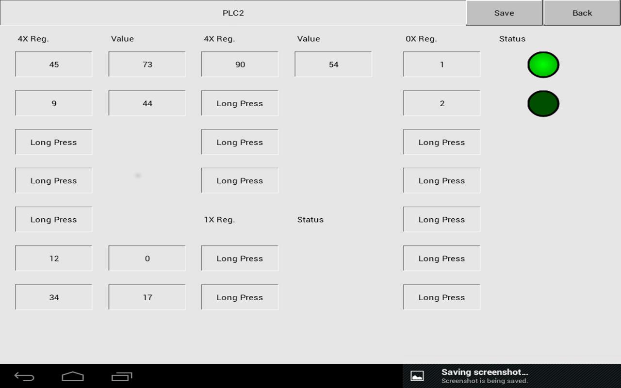 Trend, monitor and update register values in a Modbus PLC or other device supporting the Modbus/TCP protocol. Supports profiles for different devices so you can configure multiple devices or multiple views of the same device. Trends up to five registers per chart. Monitors eleven 4X, two 1x and seven 0x registers. Intelligently scales to match your Android device resolution.