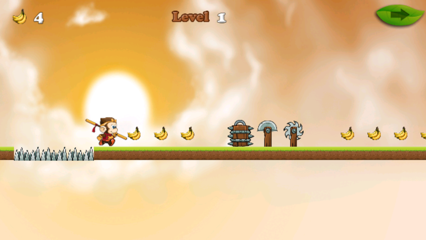 To prevent hunger, the Monkey King needs to eat bananas in order to survive. Please help the cute monkey by running and jumping across the level. Monkey King like to eat bananas but you have to overcome many obstacles like spikes, blade and stick that prevent Monkey King from eating his bananas. If you begin to play it, you will be addicted to it and fully immersed into the game environment. It's more challenging and fun than it seems!