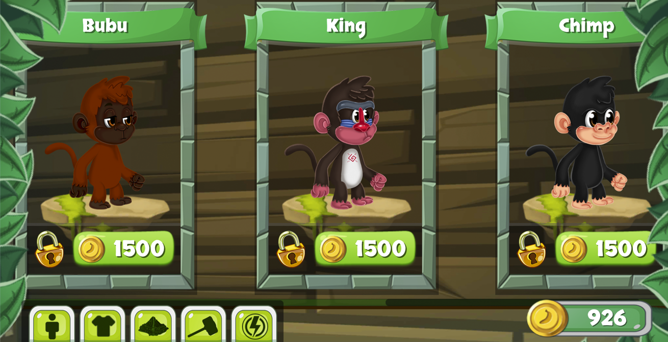 - Собирайте золотые монеты и покупайте разных персонажей, злую обезьяну, грустную, веселую, разных цветов