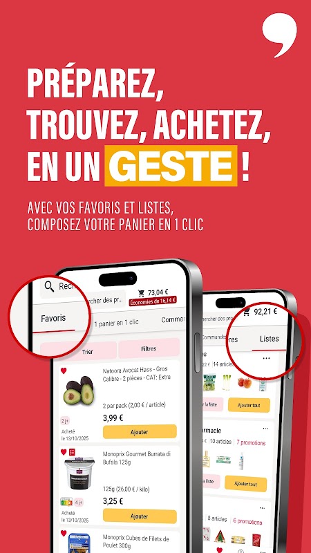 В мобильном приложении Monoprix вы найдете все отделы вашего магазина Monoprix и многое другое.
