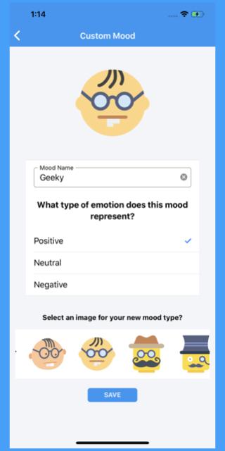 Приложение фиксирует все ваши изменения настроения и создает историю журнала с вашим текстом.
