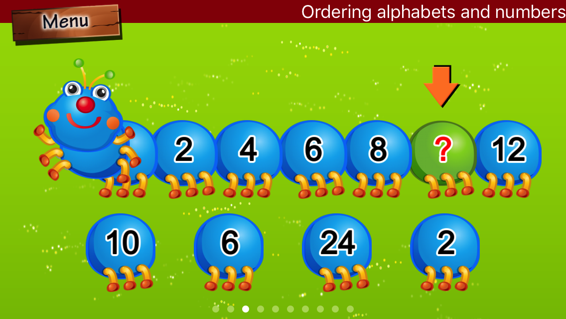 Moofy Recognizing Pattern Lite is a great app for preschool, kindergarten to 1st grade children to practice ordering and patterning. They will learn alphabetizing and ordering numbers, easy number patterns (i.e., count on to 20, even numbers, and count back from 10), and basic pattern sequences with pictures and colors (i.e., 1-2 or 11-22 patterns). This game also provides hints and feedbacks to help kids think and understand how the patterns are.