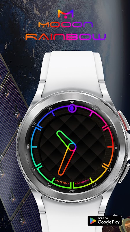 Минималистичный циферблат показывает текущее время с меняющимися цветами индексов и стрелок, а также отображает текущую фазу Луны. Шаблон набора номера можно изменить для Wear OS.