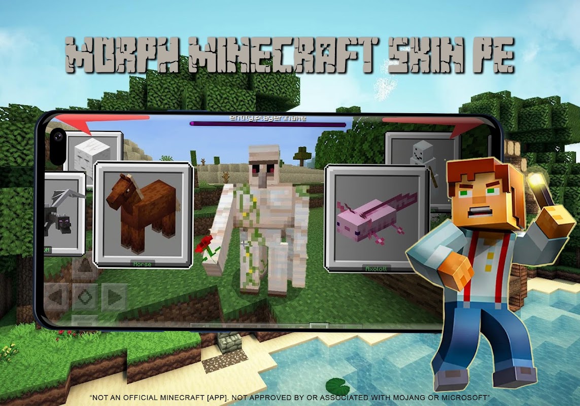 Приложение Morph MOD для Minecraft Skin — неофициальное приложение для Minecraft. Не одобрено и не связано с Mojang или Microsoft. Это приложение не связано с Mojang AB, название Minecraft, бренд Minecraft, активы Minecraft и все свойства Minecraft являются собственностью уважаемой Mojang AB.