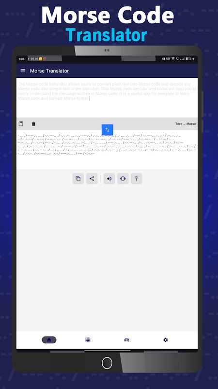 Переводчик Морзе — это мощный и простой в использовании инструмент, который поможет вам получить текст с азбукой Морзе, который поможет вам перевести буковую карту. Chahe aap Код Морзе Seekh rahe hon ya аварийные сигналы bhejna chahte hon, да, приложение aapke liye perfect hai.