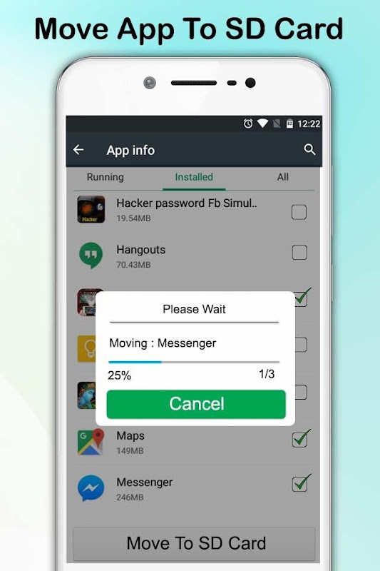 A must have tool which allows to copy any file from any application to any folder on the SD card. Save phone memory by identifying and listing all applications that can be moved to SD Card!