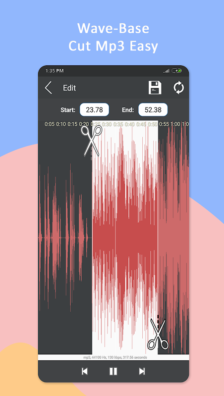 ◾️ Wave view a scrollable waveform represent of your selected music file.