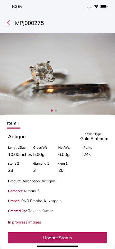 An order management app for jewellery manufacturers to receive orders for jewellery items and update/track the status of their orders.
