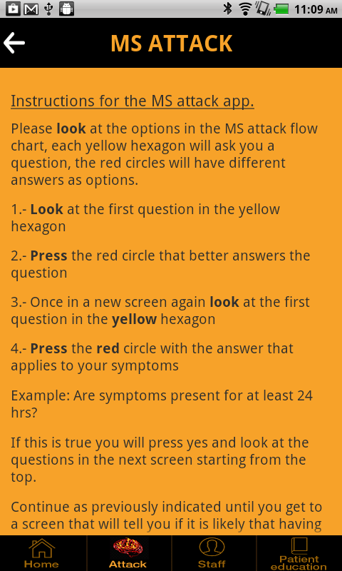 The most comprehensive MS Attack App in the market to aid multiple sclerosis patients learn about MS symptoms and how these symptoms may present during an MS attack.