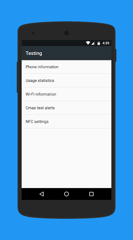 - Tests and hardware settings (Camera, TouchPanel, Vibration, Audio ...)