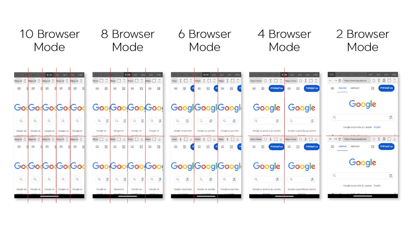 В зависимости от производительности вашего устройства вы можете выбрать «Общее количество браузеров» (4,6,8,10), поскольку старые устройства не могут одновременно управлять 10 браузерами.