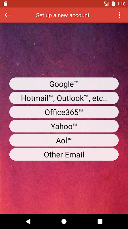 Email for Gmail - Google App you will be able to connect to any mail using your android device. Bring your mail with you anywhere you go. The app support most email providers and automatically set up you account, you will only need to type emails and password, the app will take care of everything. Between most popular emails you can easily connect to Hotmail, Ouloook, Gmail, Yahoo, Aol, Yandex and others.