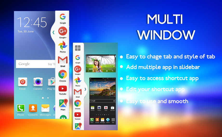 Side Bar Multi Window is a free application to provide you the ease of accessing your applications from anywhere. It is just a side launcher with your favorite applications. Shortcuts of your selected favorite applications