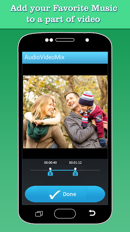 Добавить свою любимую музыку на видео в любом случае вы хотите! Выберите часть видео, где вы хотели бы, чтобы добавить песню. Поддержка песню смешивание с оригинальным звуком видео. Разве это не здорово!