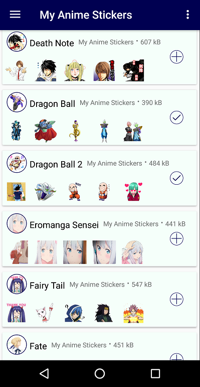 Which stickers can be added : Shingeki no Kyojin, Gintama, 3-gatsu no Lion, Clannad, love stickers, meme sticker, Mob Psycho 100, Sen to Chihiro no Kamikakushi, Code Geass, Kimetsu no Yaiba, Mo Dao Zu Shi, Vinland Saga, Senki Zesshou Symphogear, Diamond no Ace, Detective Conan, Tokyo Ghoul, Fruits Basket, Enen no Shouboutai, couple stickers, Evangelion, Made in Abyss, Yakusoku no Neverland, Goblin Slayer, Nanatsu no Taizai and many more..