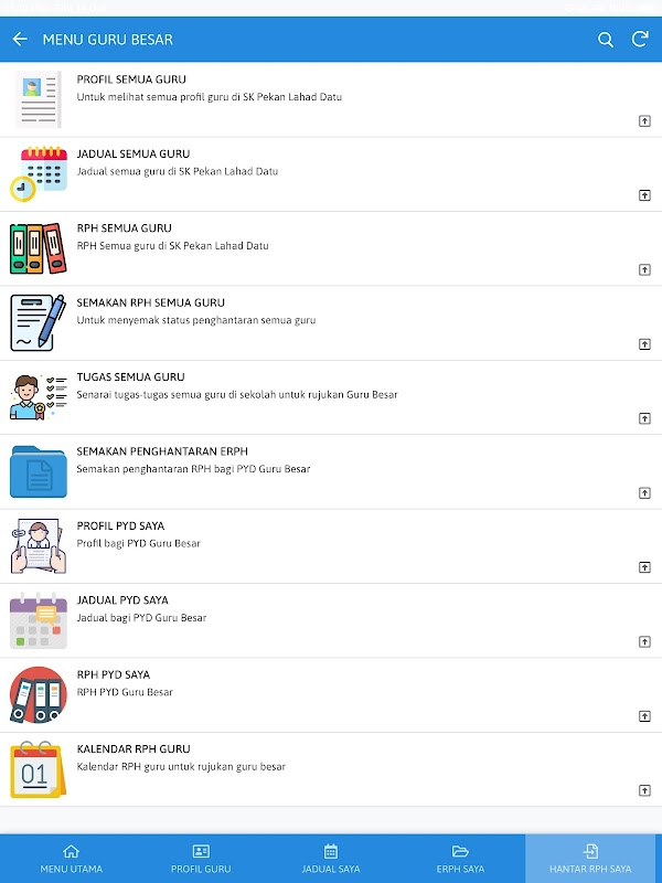 Apllikasi ini adalah alat menggantikan RPH yang sebelum ini menggunakan buku dan fail. Aplikasi ini digunakan oleh semua guru dan pentadbir untuk memudahkan penulisah Rancangan pengajaran harian, memudahan semakan dan penghantaran RPH, jimat masa, kos, dan tenaga.