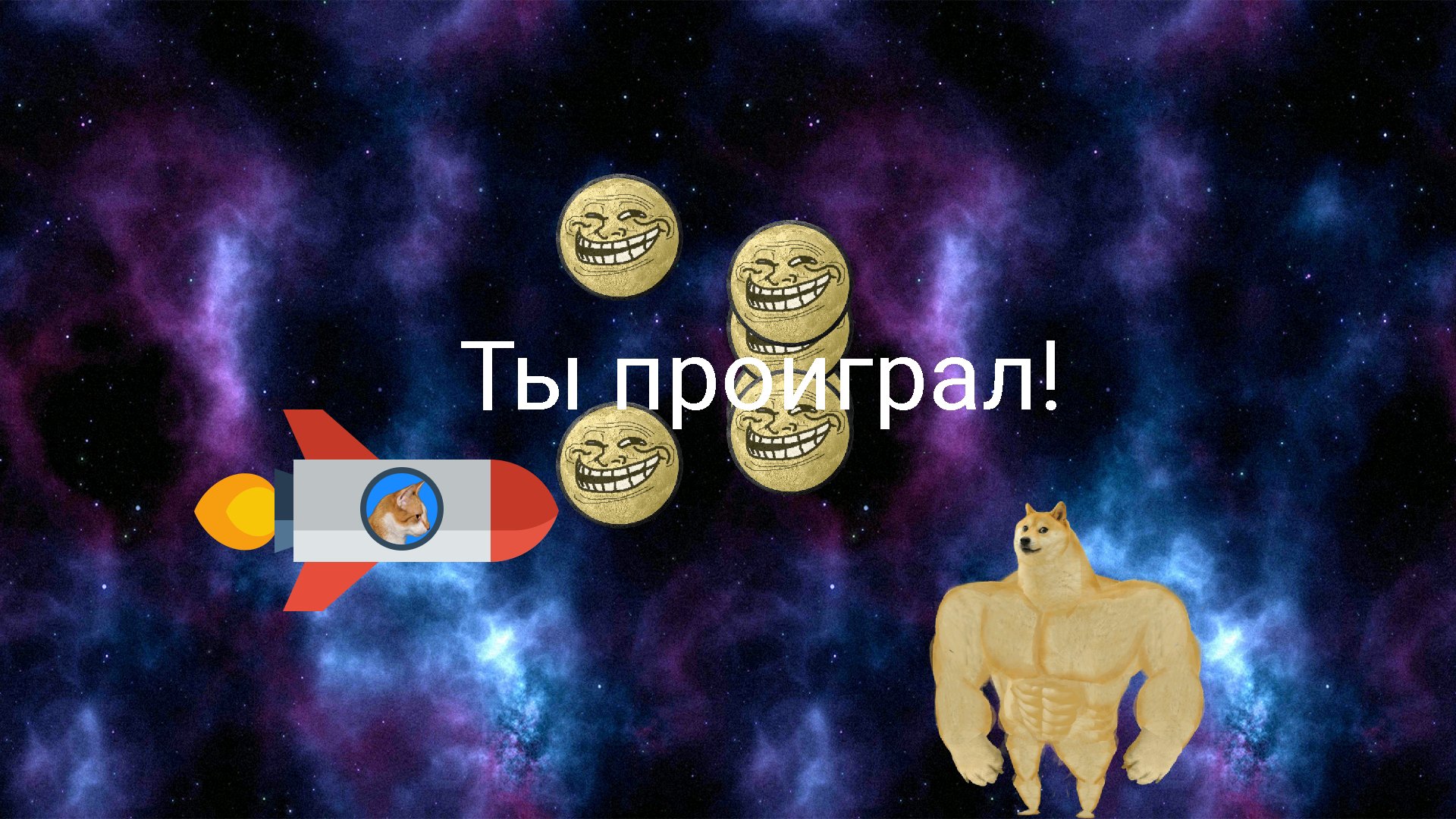 Твоя задача – стрелять в плохие мемы, которые летят на планету Земля! На твоём пути также могут встречаться плохие космические животные-боссы, но ты и их остановишь, ведь твой космический аппарат с каждым уровнем станет лучше!