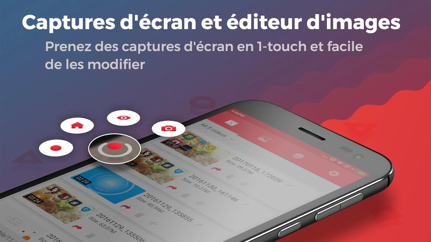 Obtenez Enregistreur Écran et camera sur votre téléphone et enregistrer facilement votre écran en un seul clic, arrêtez l'enregistrement en cliquant sur la notification, modifiez la vidéo et partager la.