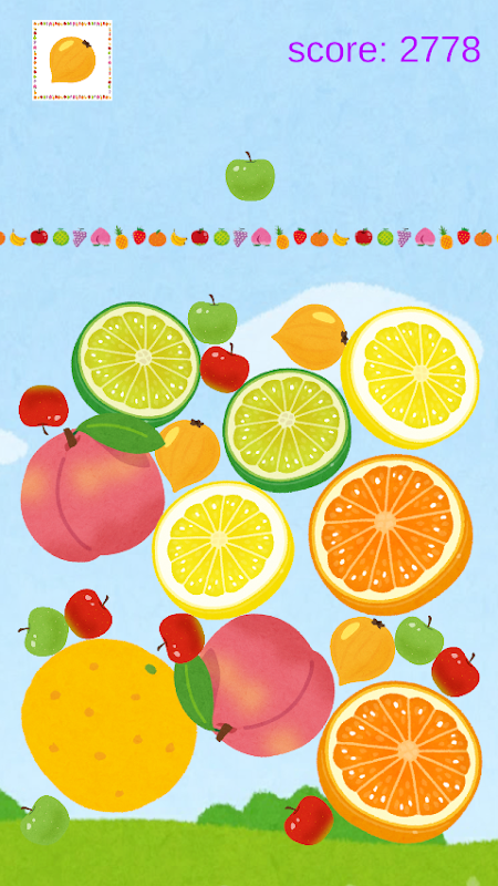 Всего в игре 11 типов фруктов, а конечная цель - создать маленький арбуз. (Зеленое яблоко, яблоко, яичный фрукт, лайм, лимон, персик, апельсин, грейпфрут, нарезанный грейпфрут, дыня, маленький арбуз)