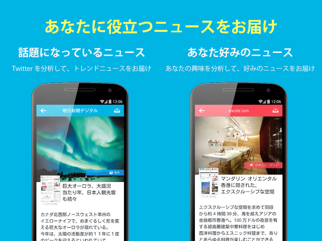 あなたの興味を学習して、あなたの興味にマッチしたニュース記事やニュース動画をお届けします。
