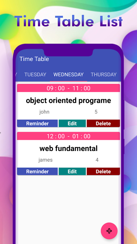 My TimeTable App will make your life easier and simpler. You can manage timetable, teachers and reminders efficiently. You can save timetable for the whole week.