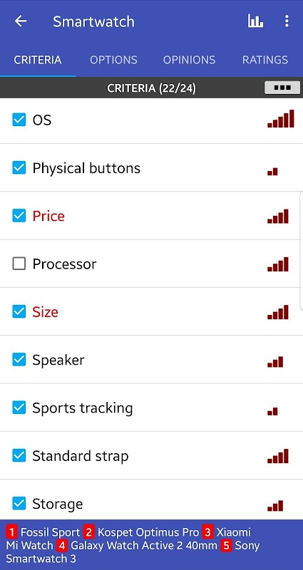 ★ Интеллектуальный помощник по сравнению помогает быстро расставить приоритеты по всем критериям, сравнивая их попарно.