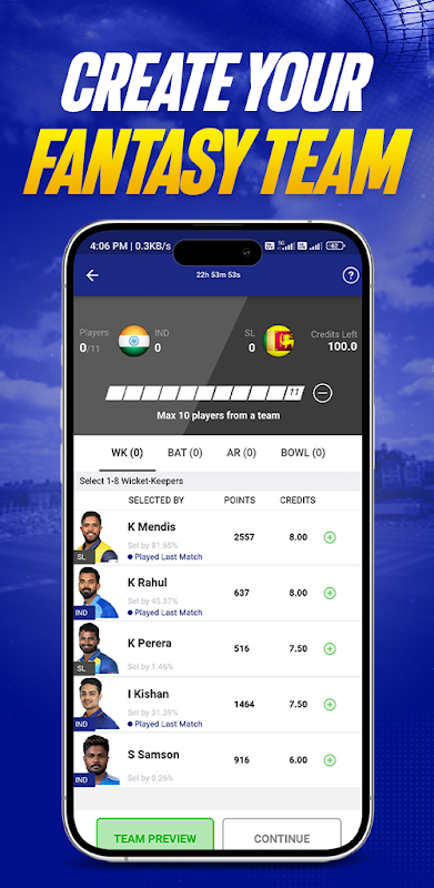 AI Team Creation: Automatically generate competitive fantasy teams with AI in just a few taps.