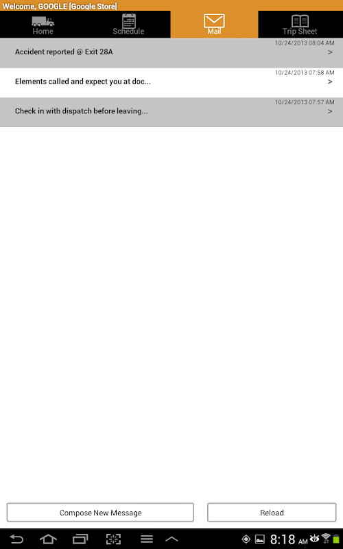 Seamless communication between driver and dispatcher including driver's daily schedules, load processing, and pre-trip inspection.