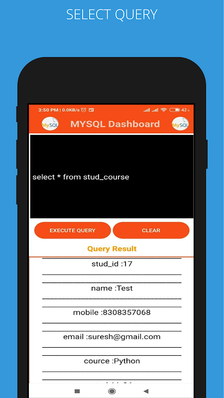 Используя это приложение, вы получите доступ к своей базе данных, просто введя основные необходимые данные для подключения. и вы вызываете все возможные изменения с помощью SQL Query.