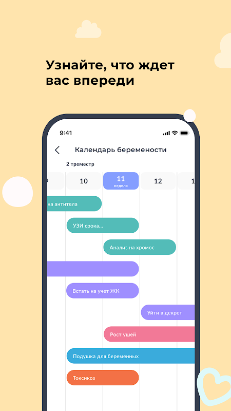 🔹 Беременность и развитие ребенка Следите за изменениями в своем организме и ростом малыша по неделям беременности, а после рождения — отслеживайте важные этапы его развития.