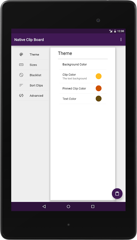 The colors of the clipboard can be easily changed though the app. Or choose one of the predefined themes