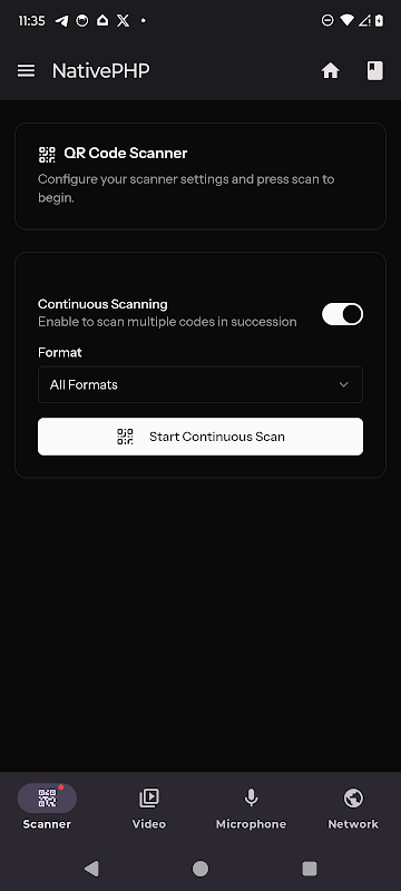 Это приложение, созданное с использованием NativePHP Mobile, запускает полноценный бэкенд Laravel непосредственно в приложении для Android или iOS, без необходимости использования React Native, Flutter или любого другого фронтенд-фреймворка. Kitchen Sink здесь, чтобы доказать простую, но важную истину: если что-то работает в Laravel, то это может работать и на вашем телефоне.