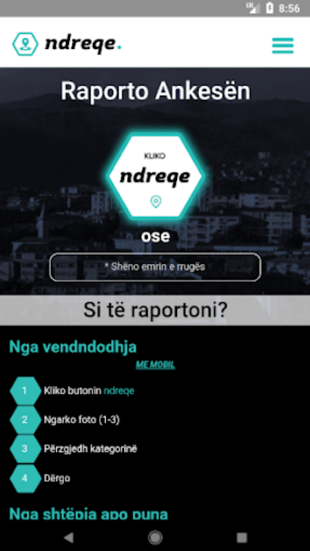 Ndreqe.com является онлайн-платформой, в которой собраны анкесы и qytetarëve përbime publike komunale dhe i portretizon në një hartë интерактивный. Platforma u mundëson qytetarëve të raportojnë lehtë dhe shpejt ankesat ndërsa institucioneve komunale ju mundëson kanalizimin e këtyre kërkesave në një vend lehtë të qasshëm.