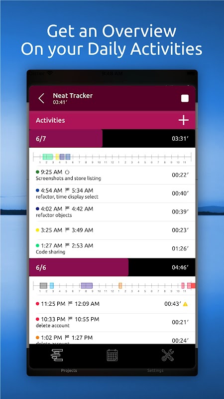 С помощью Neat Time Tracker вы можете регистрировать и отслеживать свою рабочую деятельность, добавлять описания, настраивать выставление счетов за почасовую работу и многое другое!