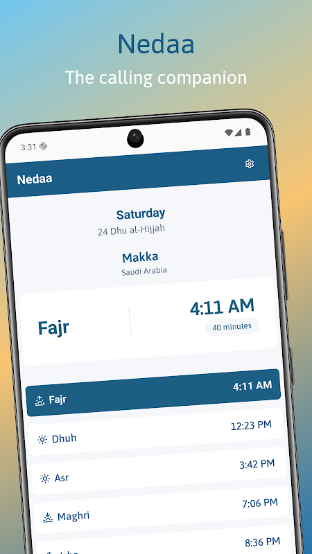 Независимо от того, поддерживаете ли вы ежедневную практику, путешествуете или пытаетесь соответствовать времени вашего местного сообщества, Nedaa обеспечивает точность и уважение, которых заслуживает ваша духовная практика.