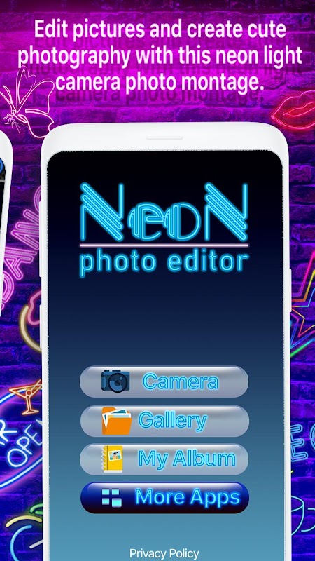 Неон Фото Редактор - Неоновые Эффекты Для Фото мгновенно украсит ваши фотографии. Сделайте снимок своей камерой или загрузите его из галереи. Добавьте неоновые фото наклейки, неоновые рамки или напишите неоновый текст и придайте вашим фотографиям совершенно новый вид. Вы даже можете рисовать на своих фотографиях и делать неоновые линии, которые сделают вашу фотографию уникальной и особенной. Кроме того, наш редактор изображений с неоновым светом позволяет быстро и легко применять фотофильтры. Добавьте неоновый текст на фото и напишите что хотите. Сохраните новый фотомонтаж с неоновым светом на свое устройство или отправьте друзьям или родственникам. Публикуйте свои фотографии с эффектами неонового света в социальных сетях и получайте массу лайков и комментариев. Убедитесь, что все будут удивлены вашими новыми неоновыми изображениями, созданными в нашем неоновом фотоизображении с неоновыми эффектами для изображений.
