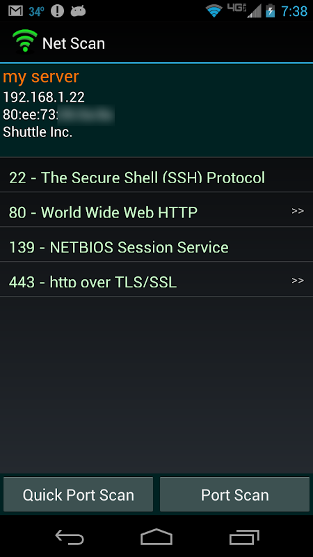 - Сведения об IP и порте: просмотр важной информации, такой как IP-адреса, имена устройств, информация о поставщике и открытые порты.
