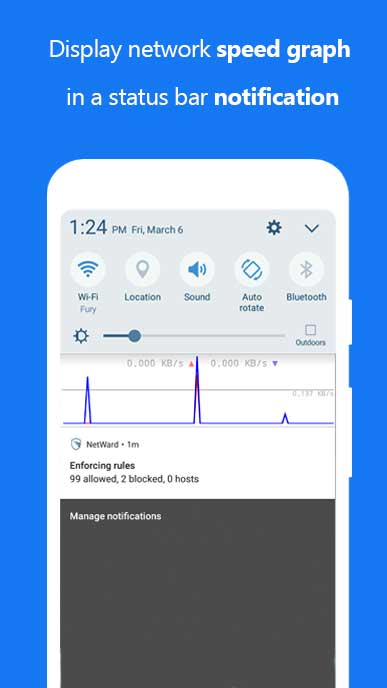 • Jurnal de trafic; cauta si filtreaza lista de accesari; exporta fisiere PCAP pentru analiza traficului • Permite/blocheaza accesul per aplicatie si per domeniu • Notificare aplicatie noua instalata; configureaza NetWard direct din notificare • Grafic viteza conexiune intr-o notificare • Alege din cele 5 teme aditionale atat in versiune deschisa cat si inchisa