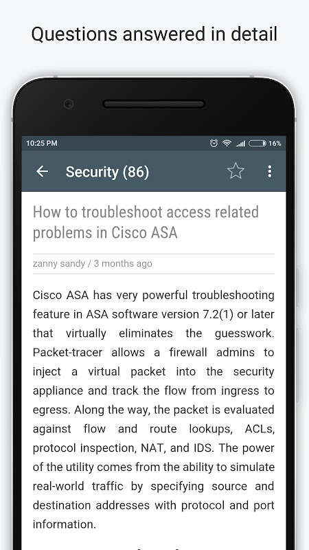Network Interview QnA is a collection of frequently asked questions in the Routing,Switching & Security interviews .Most of the questions are gathered from the numerous sources including the real interviews. This application is great for both interviewer to quickly come up with questions and for interviewee for brushing up questions before an interview.